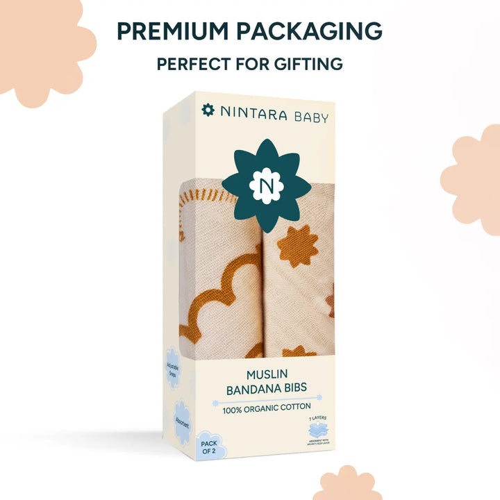 Our Beige Patterns Pack - Set of 2 bandana bibs are carefully designed to manage the many messes that come with feeding and teething.