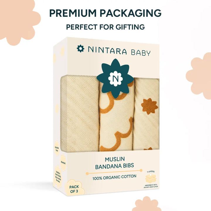 Our Beige Trio Pack - Set of 3 bandana bibs are carefully designed to manage the many messes that come with feeding and teething.