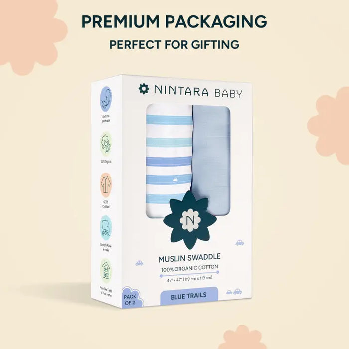 Muslin Baby Swaddle - Extra-Large - Set of 2 | Blue Trails