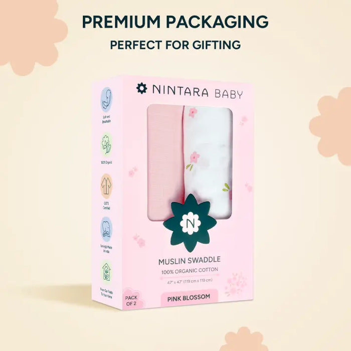 Muslin Baby Swaddle - Extra-Large - Set of 2 | Pink Blossom