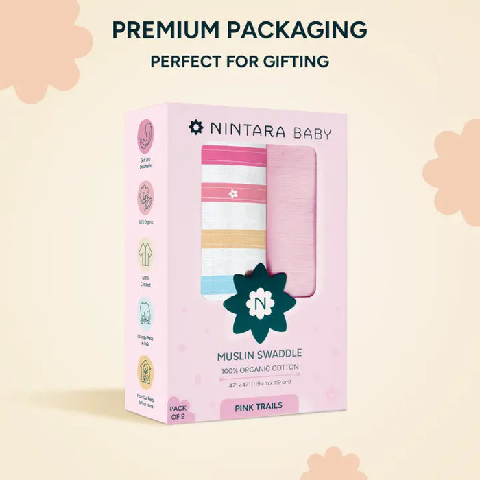 Muslin Baby Swaddle - Extra-Large - Set of 2 | Pink Trails