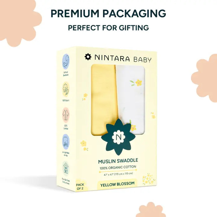 Muslin Baby Swaddle - Extra-Large - Set of 2 | Yellow Blossom