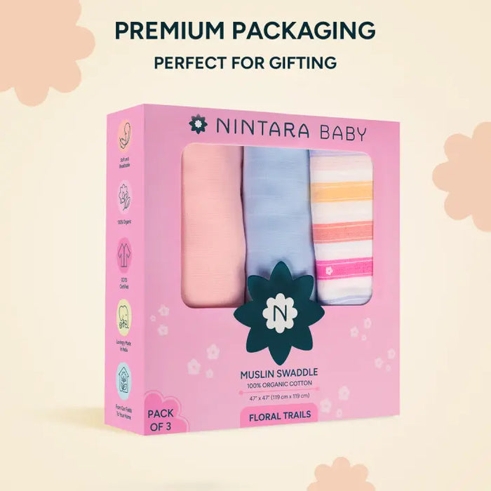 Muslin Baby Swaddle - Extra-Large - Set of 3 | Floral Trails