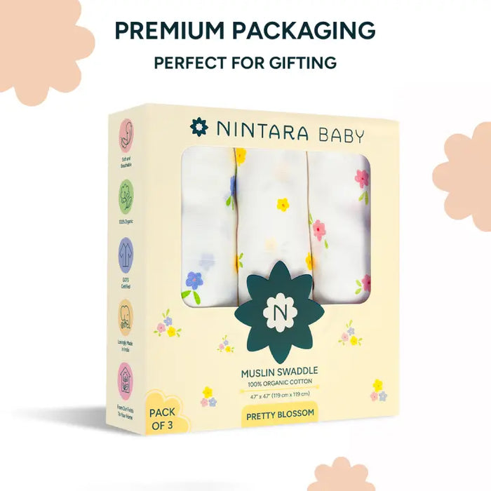 Muslin Baby Swaddle - Extra-Large - Set of 3 | Pretty Blossom