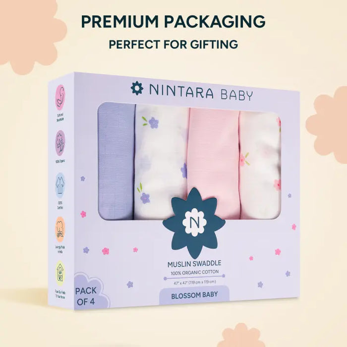 Muslin Baby Swaddle - Extra-Large - Set of 4 | Blossom Baby