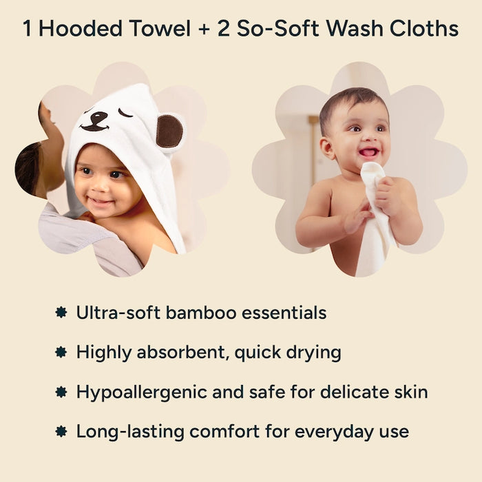 1 Bamboo Hooded Towel + 2 So-Softs™ Washcloths Set | Bear