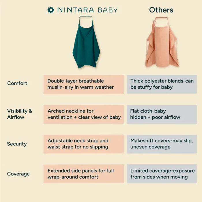 Privacy in public or social settings: The nursing cover’s generous wrap-around cut shields you from multiple angles, so you can feed calmly at cafés, family functions, parks, or in transit.