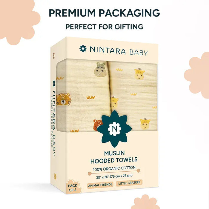 Our Animal Friends + Little Grazers Set (Set of 2) hooded towels are dutifully designed to solve common bath-time problems and make it a soothing and enjoyable experience.