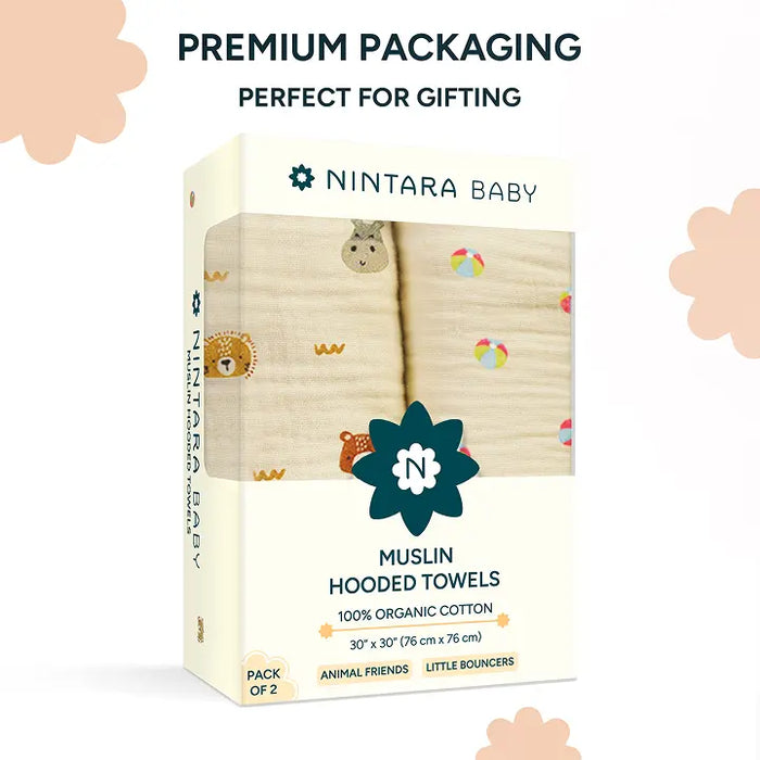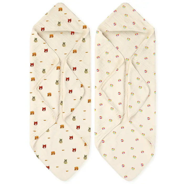 Our Animal Friends + Little Bouncers Set (Set of 2) hooded towels are dutifully designed to solve common bath-time problems and make it a soothing and enjoyable experience.