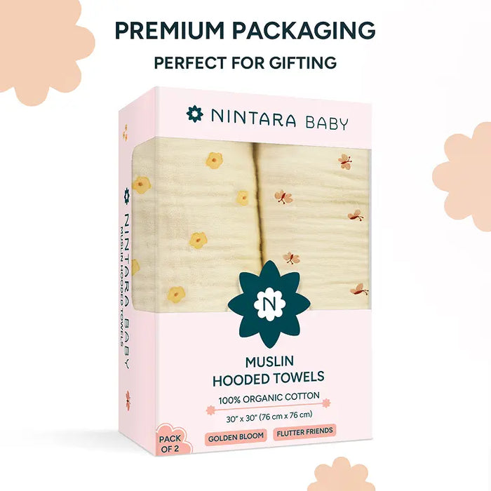 Our Golden Bloom + Flutter Friends Set (Set of 2) hooded towels are dutifully designed to solve common bath-time problems and make it a soothing and enjoyable experience.
