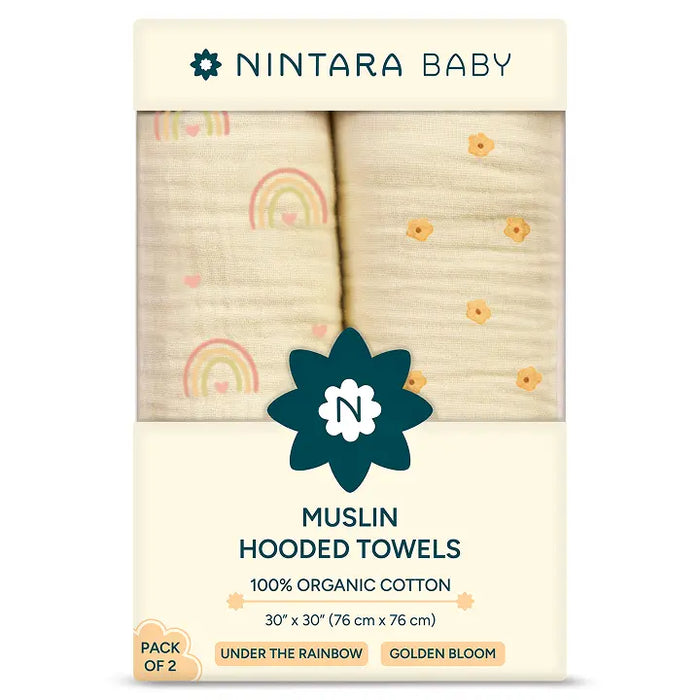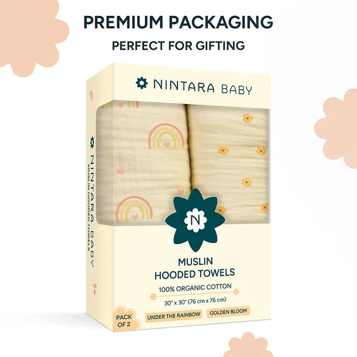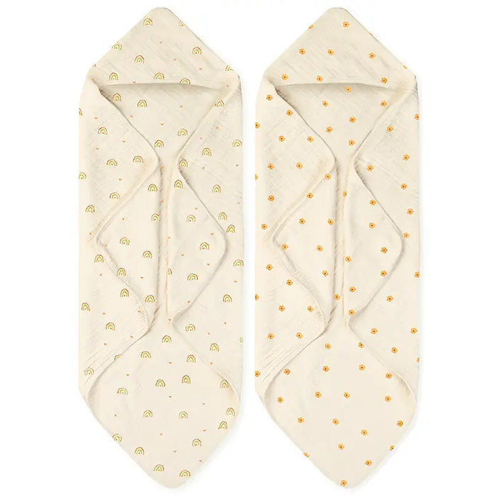 Our Under The Rainbow + Golden Bloom Set (Set of 2) hooded towels are dutifully designed to solve common bath-time problems and make it a soothing and enjoyable experience.