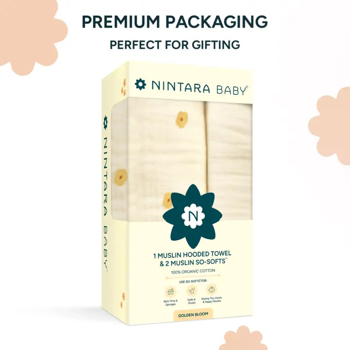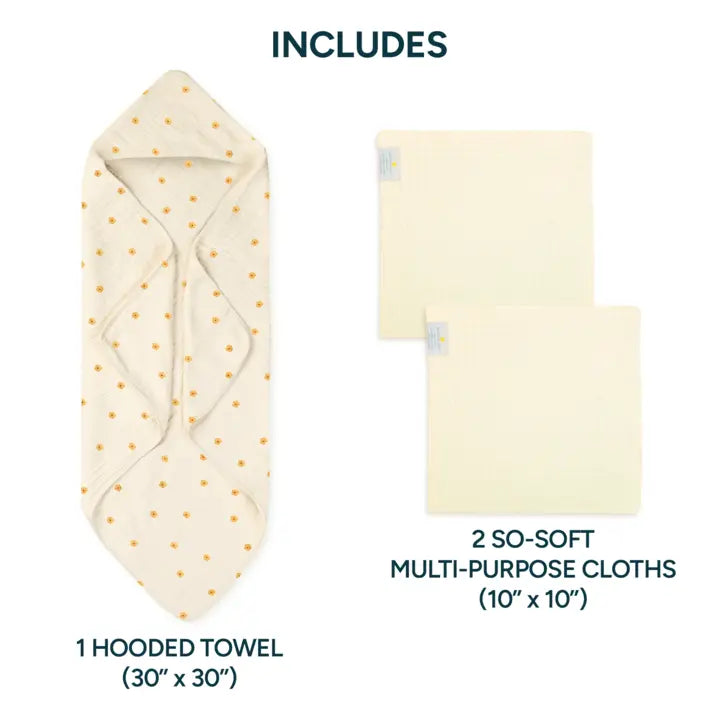 1 Muslin Baby Hooded Towel + 2 So-Softs™ Washcloths Set | Golden Bloom