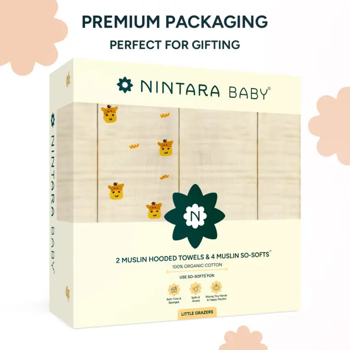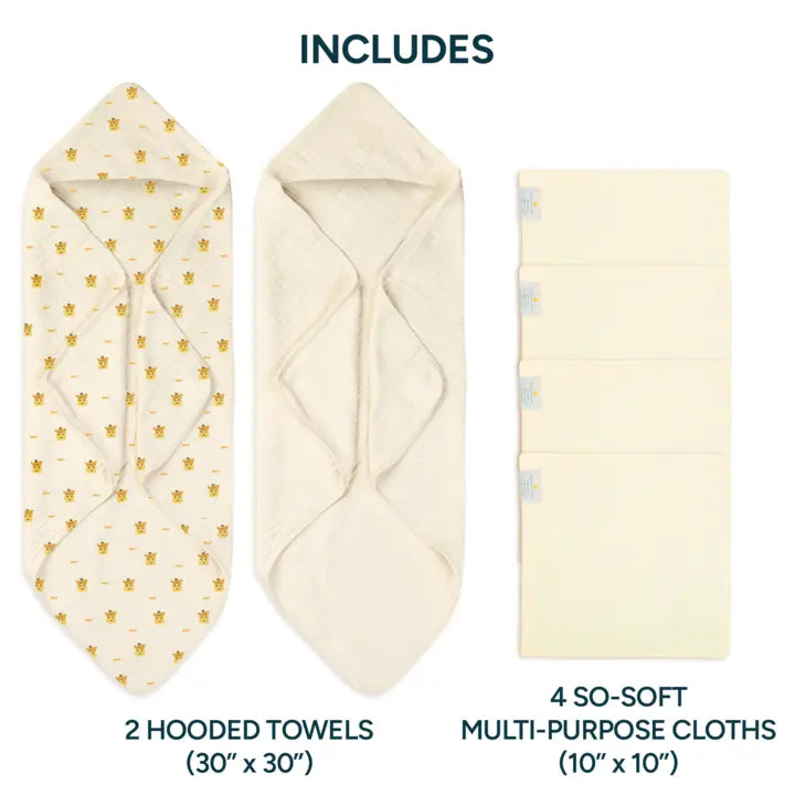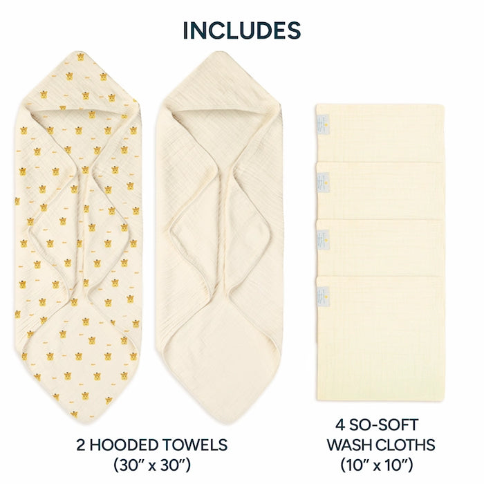 2 Muslin Baby Hooded Towels + 4 So-Softs™ Washcloths Set | Little Grazers + Warm White