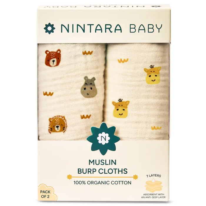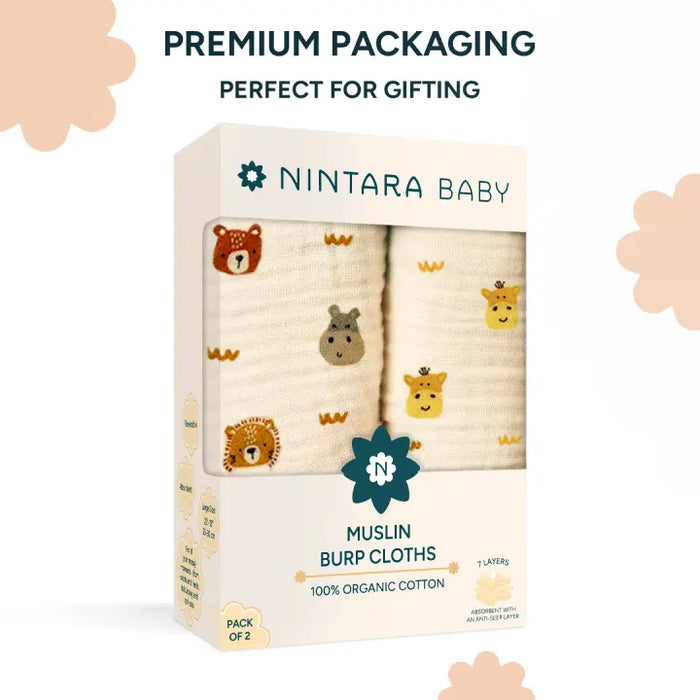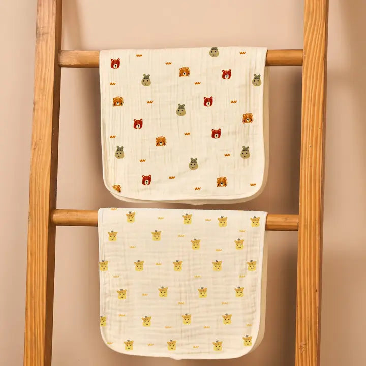 Our Animal Friends Pack baby burp cloths (Set of 2) are thoughtfully crafted to tackle the everyday messes that come with feeding and drooling.