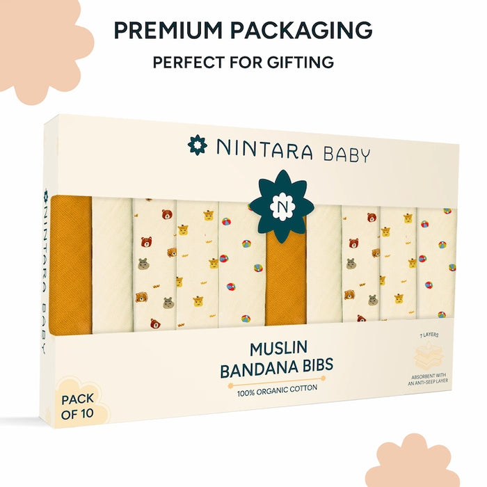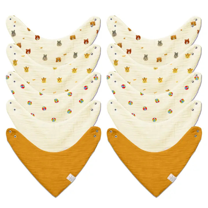 Our Animal Friends Pack- Set of 10 bandana bibs are carefully designed to manage the many messes that come with feeding and teething.