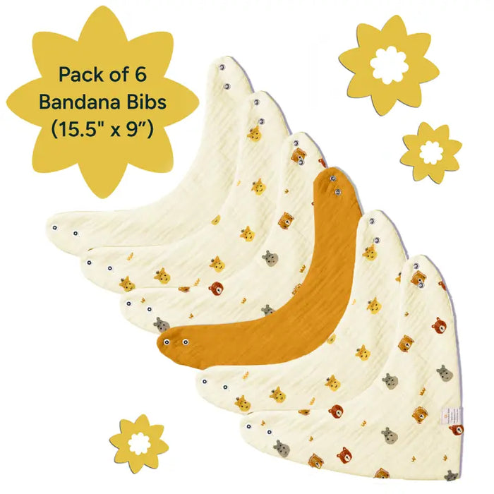 Our Animal Friends Pack- Set of 6 bandana bibs are carefully designed to manage the many messes that come with feeding and teething.