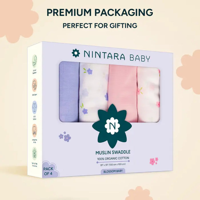 Muslin Baby Swaddle - Large - Set of 4 | Blossom Baby