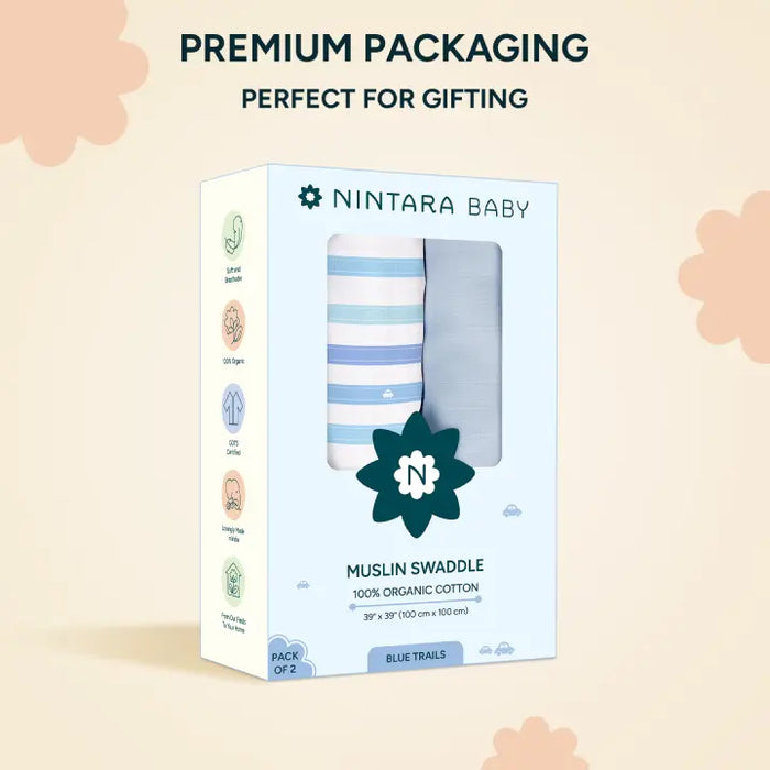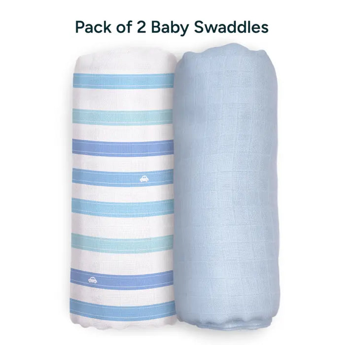 Muslin Baby Swaddle - Large - Set of 2 | Blue Trails