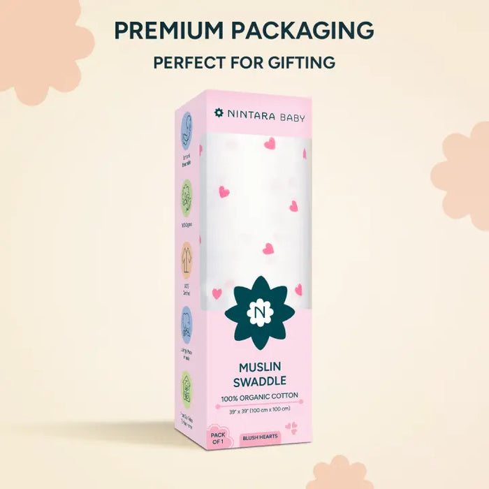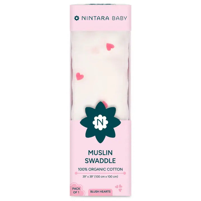 Muslin Baby Swaddle - Large | Blush Hearts