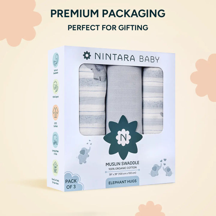 Baby Swaddle Blanket - Large - Set of 3 | Elephant Hugs