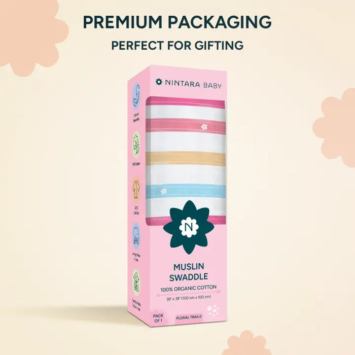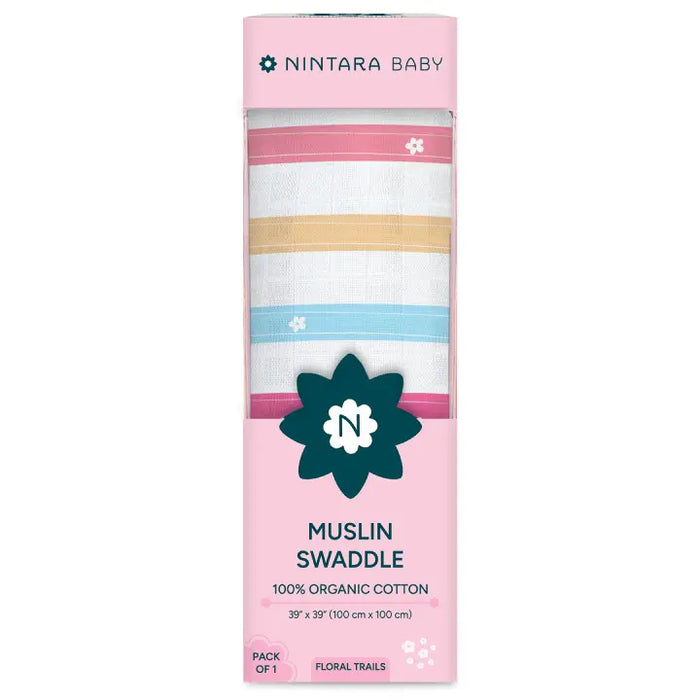 Muslin Baby Swaddle - Large | Floral Trails