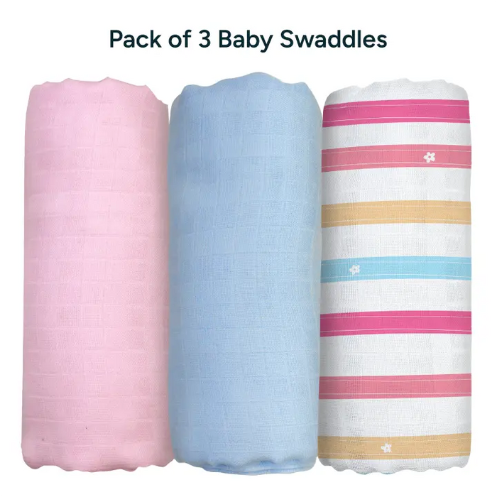 Muslin Baby Swaddle - Large - Set of 3 | Floral Trails