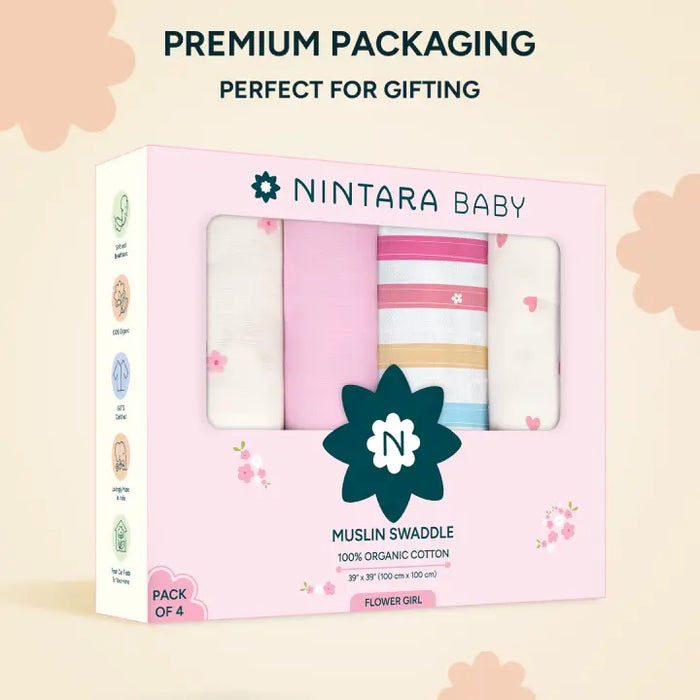 Muslin Baby Swaddle - Large - Set of 4 | Flower Girl