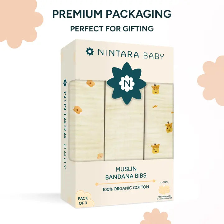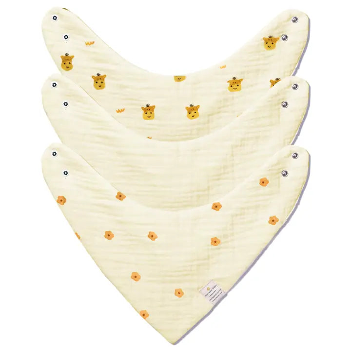 Our Golden Bloom Pack- Set of 3 bandana bibs are carefully designed to manage the many messes that come with feeding and teething.