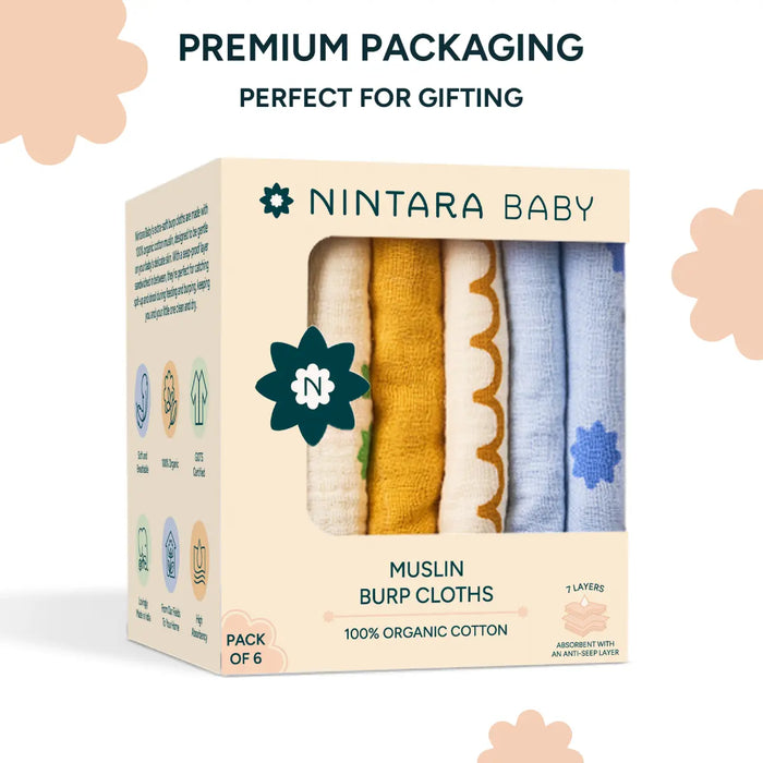 The 6-layered organic cotton ensures softness and maximum absorbency.