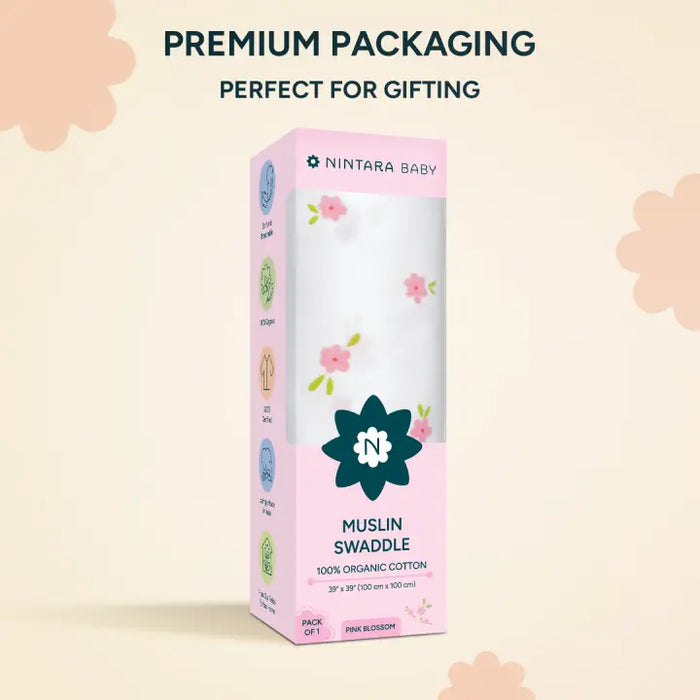 Muslin Baby Swaddle - Large | Pink Blossoms