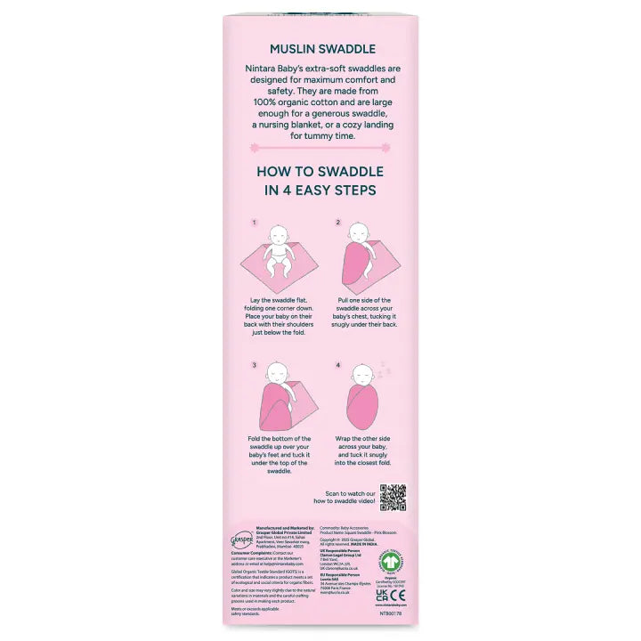Ensure the swaddle is snug around the baby’s body, but loose enough around the hips to allow for healthy hip development.
