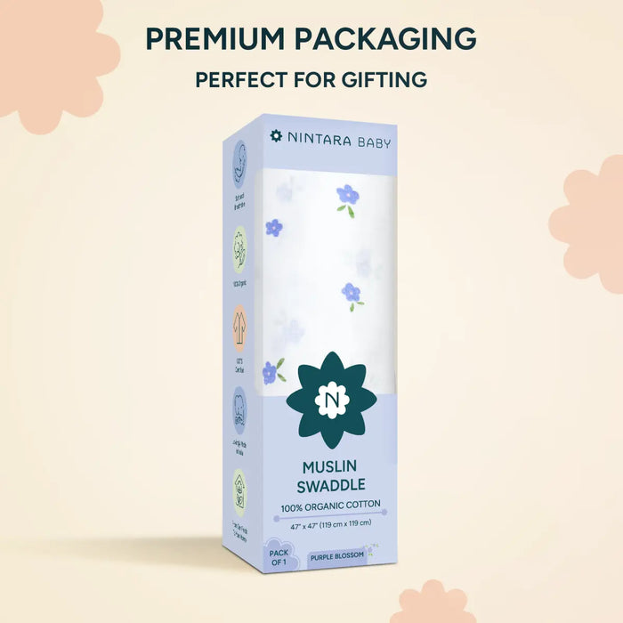 Muslin Baby Swaddle - Extra-Large | Purple Blossom