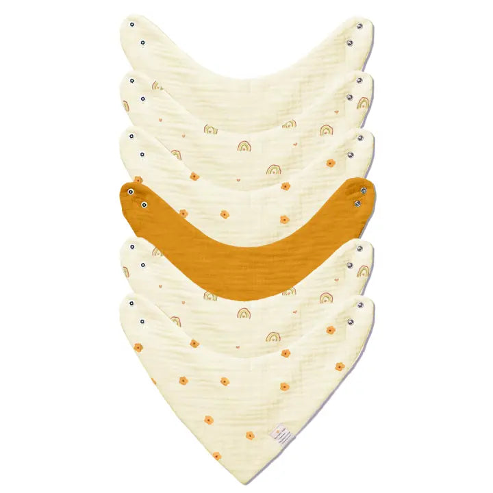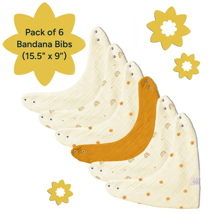 Our Rainbow Bloom Pack- Set of 6 bandana bibs are carefully designed to manage the many messes that come with feeding and teething.
