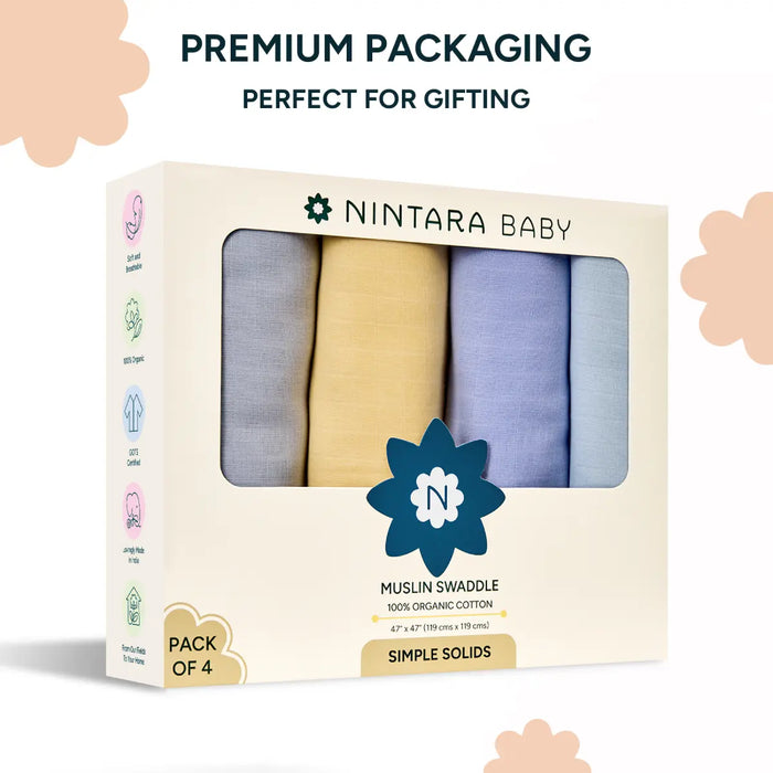 Muslin Baby Swaddle - Extra-Large - Set of 4 | Simple Solids