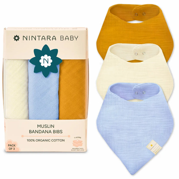 Meet your baby’s dependable mealtime sidekick with Nintara baby’s Solids Pack- Set of 3 stylish, soft and handy bandana bibs.