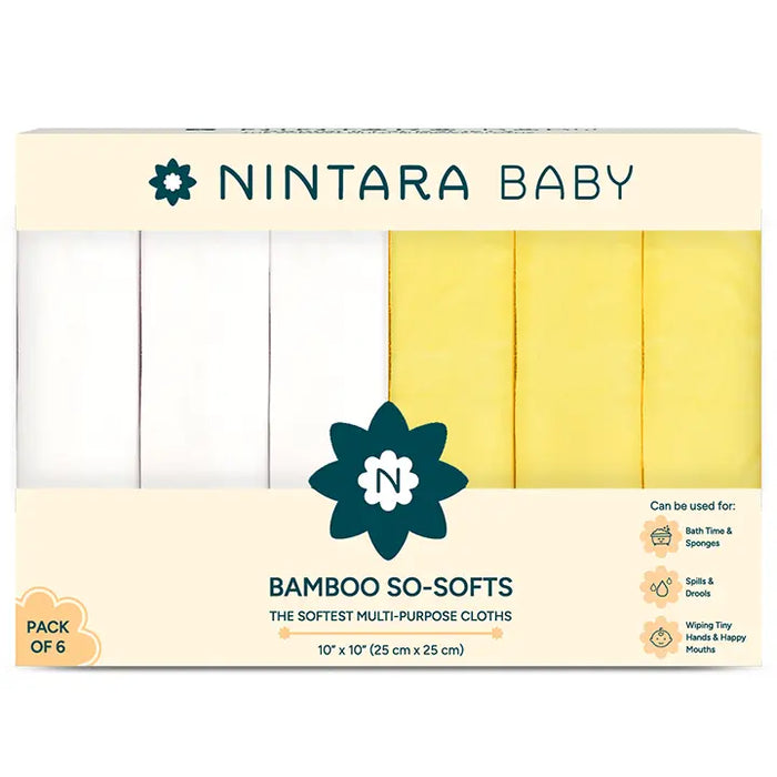 Bamboo So-Softs™ | Multipurpose Baby Washcloth - Set of 6 | Yellow + White
