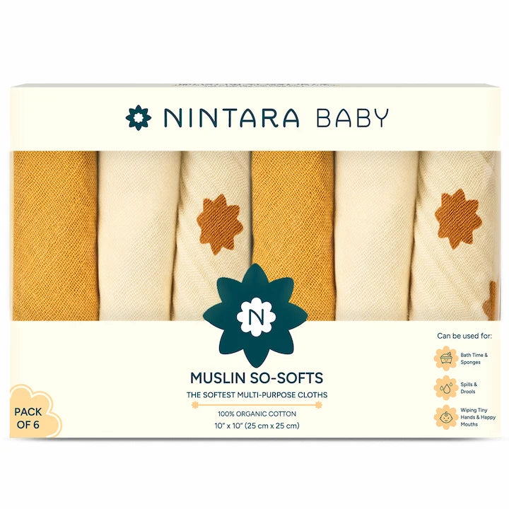 Muslin So-Softs™ | Multipurpose Baby Washcloth - Set of 6 | Butterscotch